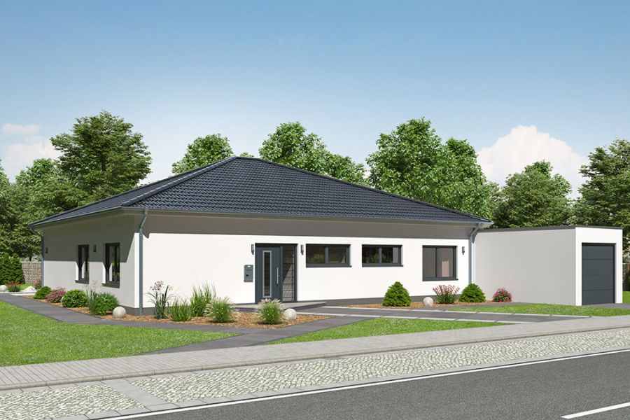 Bungalows erleben in den letzten Jahren eine echte Renaissance. Die ebenerdige Bauweise, kombiniert mit zeitgemäßem Design, energieeffizienter Technik und durchdachten Grundrissen, macht sie zu einer attraktiven Wohnform für alle Altersgruppen – von jungen Familien bis hin zu Senioren, die barrierefreies Wohnen schätzen. SYSTEM MASSIVHAUS bietet diesen Haustyp ebenfalls an. Aufgrund einer besonderen Bauweise weisen unsere Häuser eine sehr gute Statik auf. Daher sind wir bei der Erstellung von Grundrissen extrem flexibel und ermöglich nahezu jeden Wunsch. Hier stellen wir vier Bungalows vor, die unterschiedlicher kaum sein können.